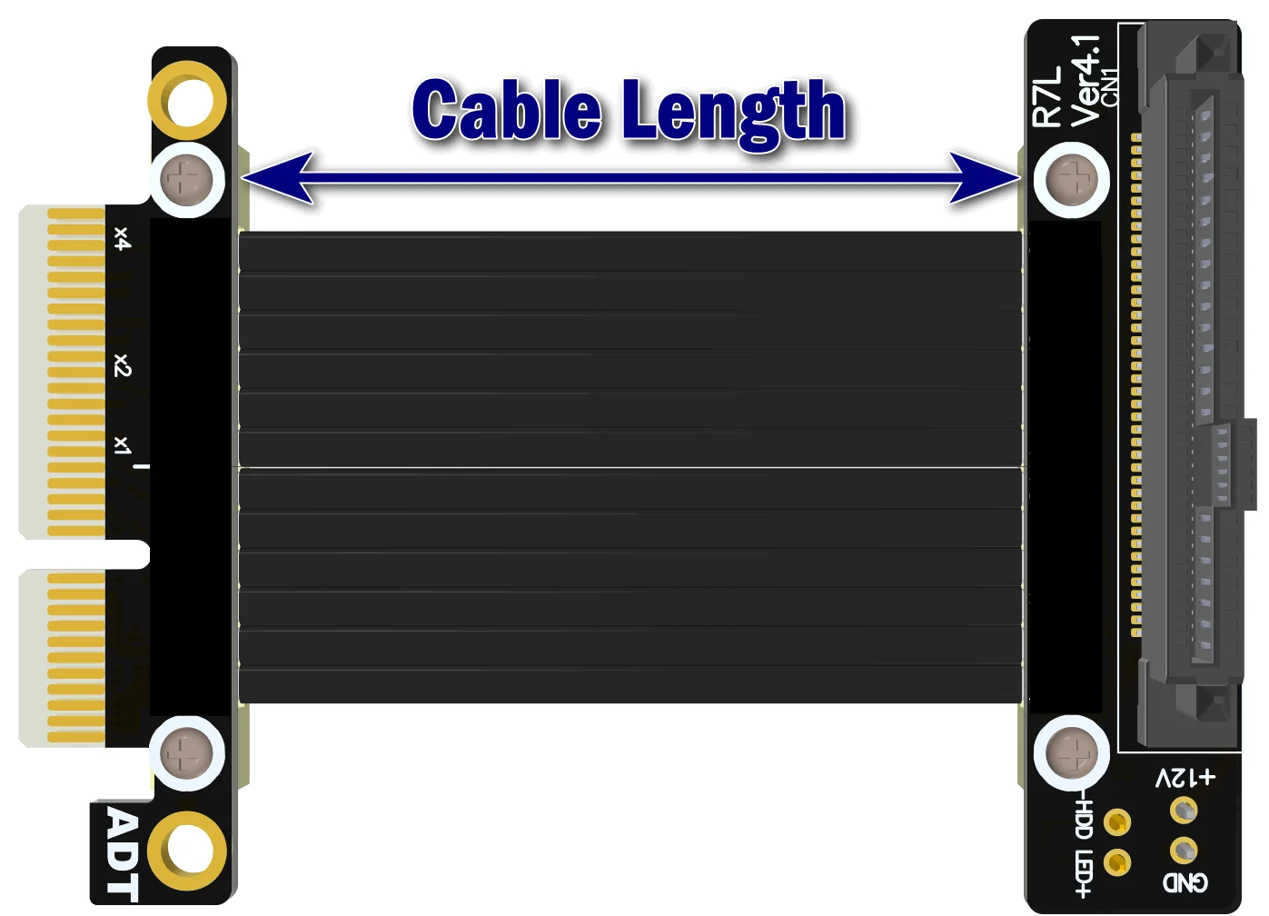 La longitud del cable se refiere a la parte del cable visible.No incluye la PCB ni el conector.Para conocer la longitud del cable, consulte la flecha azul de 5 cm en la siguiente figura.