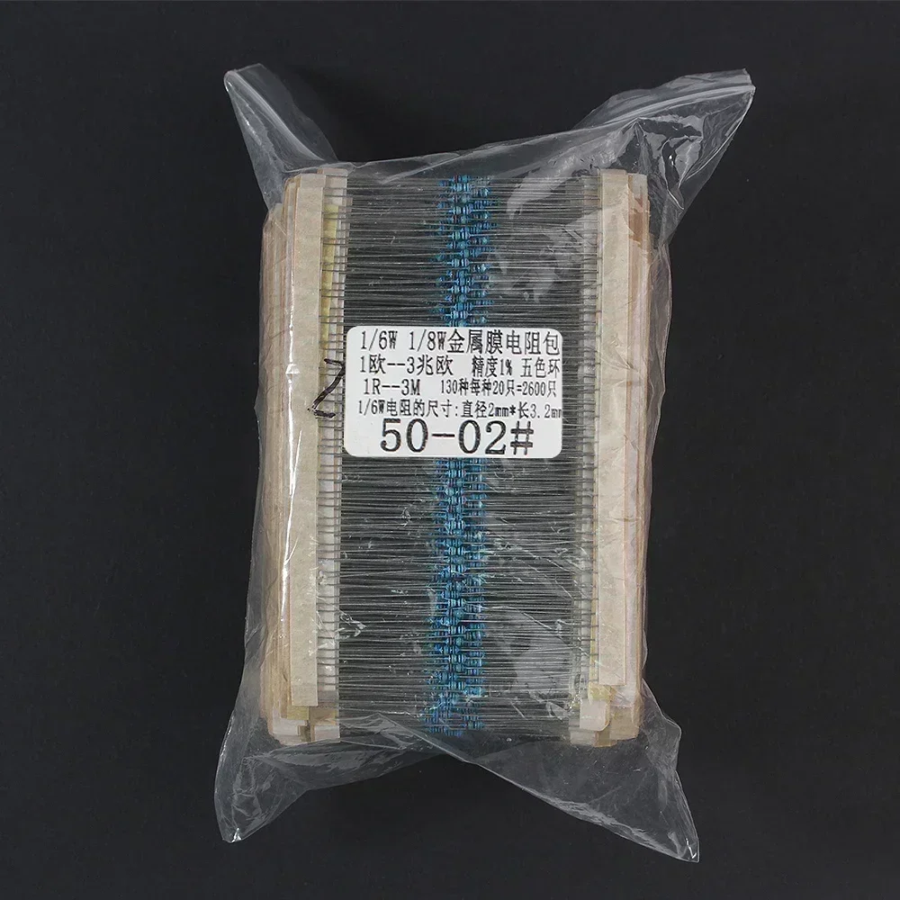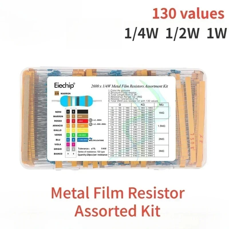 Comprar 650/1300/2600 Uds Kit surtido de resistencias de película metálica 1R ~ 3M Ohm resistencia 130 valores 1/4W 1/2W 1W 1% resistencias de alta calidad