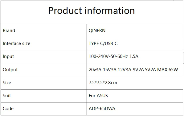 Nombre del artículo: 20V3.25A 65W tipo C ForASUS