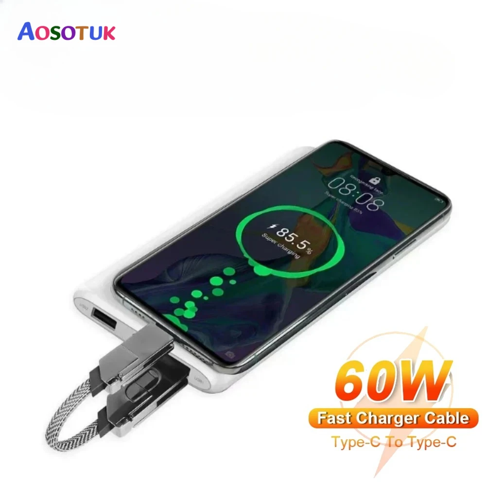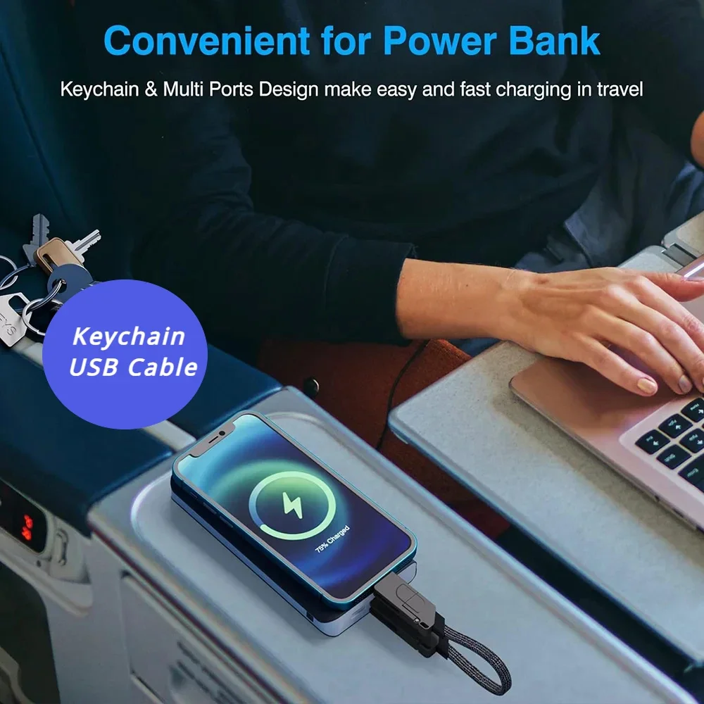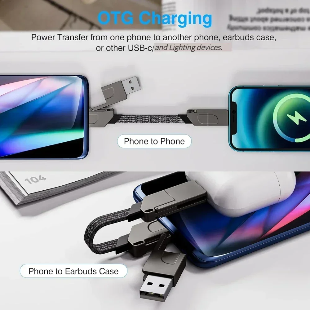 4 in 1 Multi Fast Charging Cable Keychain PD for iPhone 14 13 12 Lighting 27W Andriod TYPE-C 60W QC 27W Fast Charging Data Cable Keychain