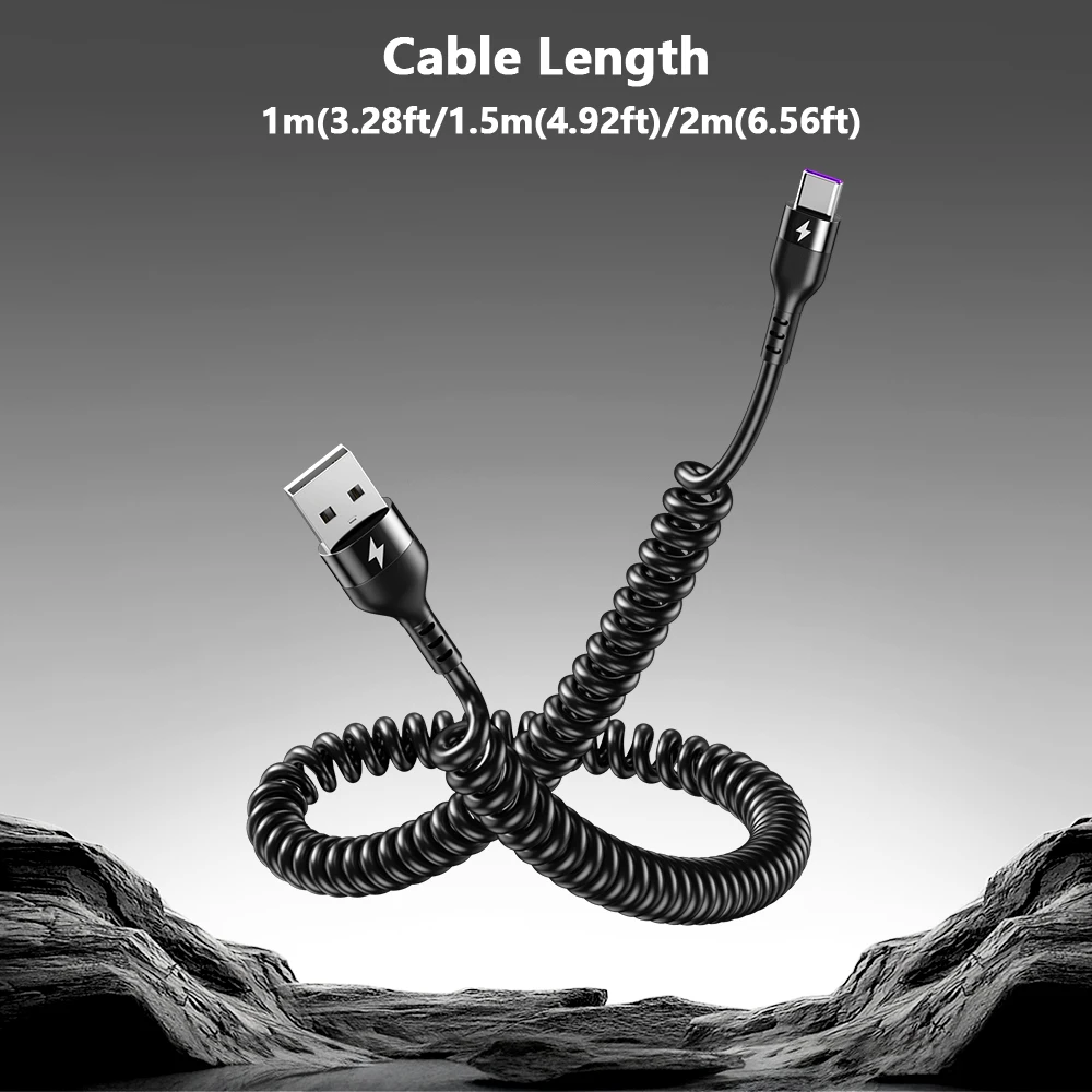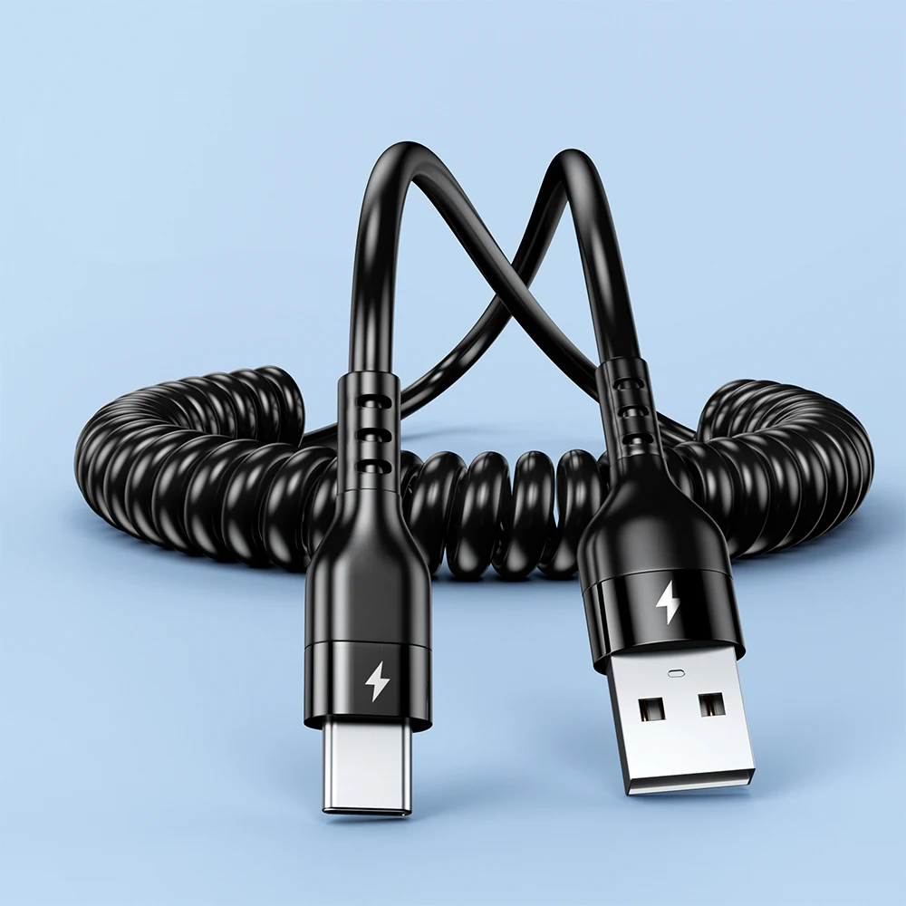 66W 6A tipo C codo resorte telescópico cable de datos de carga rápida teléfono Android para Samsung Huawei Xiaomi para jugar al juego