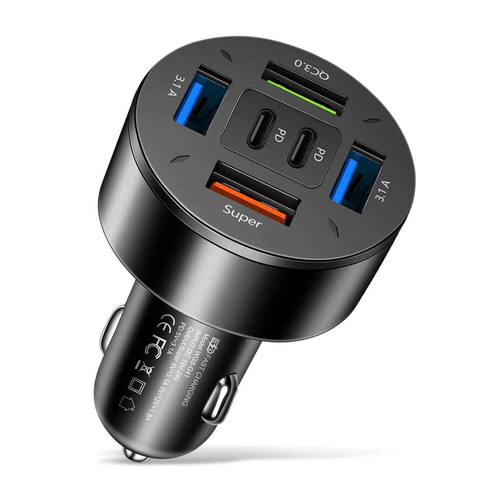 • Dual PD 6-port universal charging:Charge up to 6 devices simultaneously with two PD ports, making it perfect for road trips and long commutes.