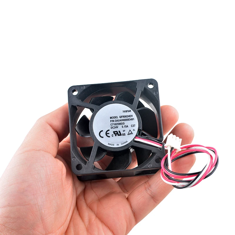 El ventilador QFR0624EH cuenta con un potente voltaje DC24V y un bajo consumo de corriente de 0,15A, lo que garantiza una refrigeración eficiente para su convertidor de frecuencia.