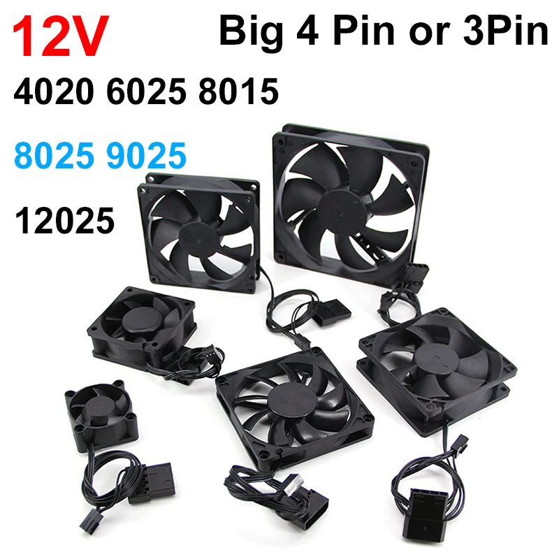 Comprar 6cm 8cm 80mm 90mm 120mm 8cm 8025 DC 12v 3pin grande 4pin ventilador de refrigeración sin escobillas ventiladores de PC para caja de ordenador GPU CPU radiador enfriador