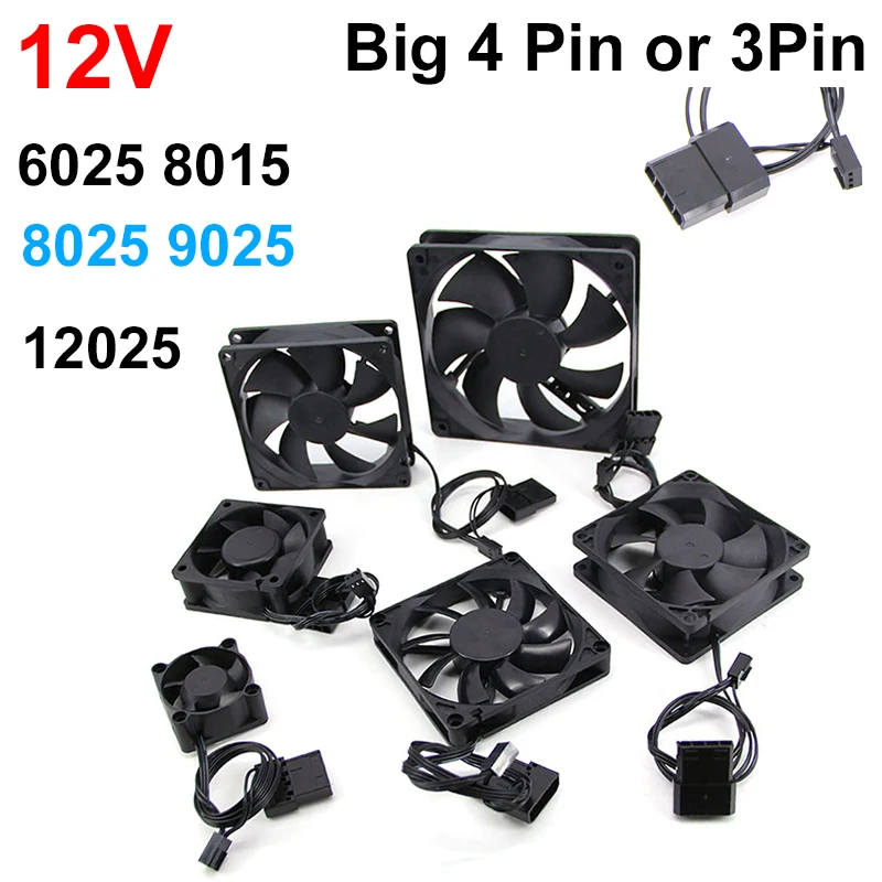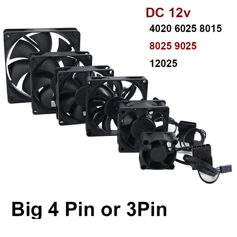 Comprar 6cm 8cm 80mm 90mm 120mm 8cm 8025 DC 12v 3pin grande 4pin ventilador de refrigeración sin escobillas ventiladores de PC para caja de ordenador GPU CPU radiador enfriador