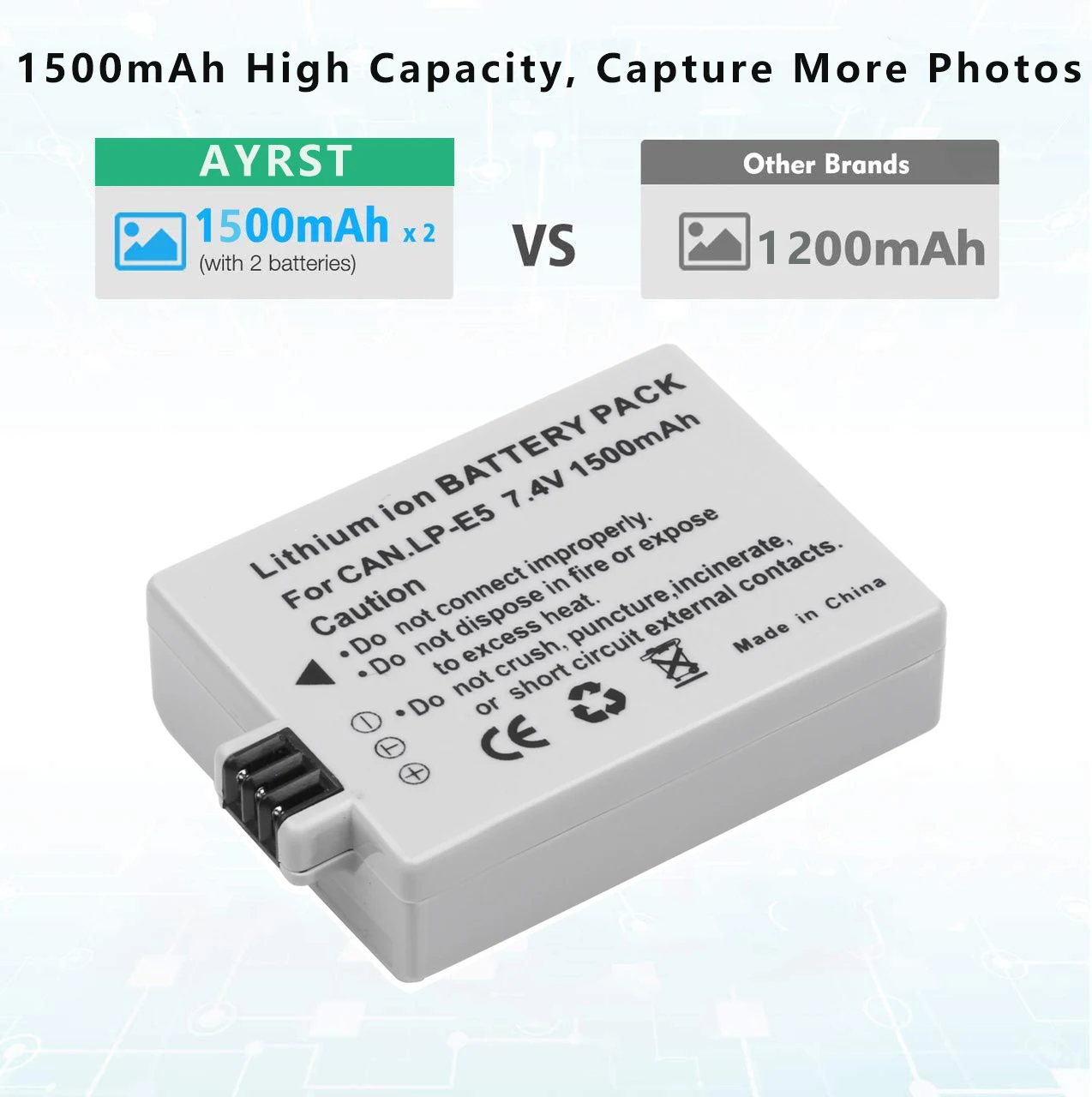 Batería de cámara 7,4V 1500mAh LP-E5 LPE5 LP E5 para Canon EOS Rebel XS, Rebel T1i, Rebel XSi,
