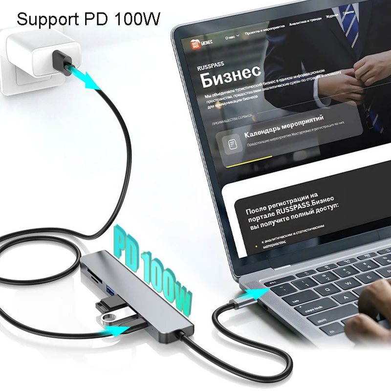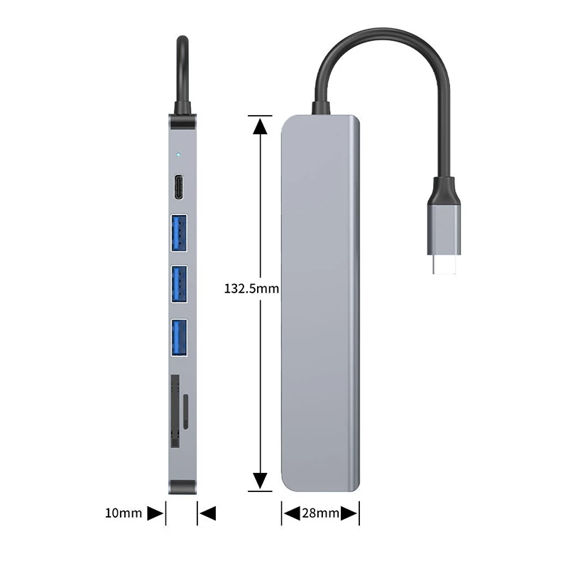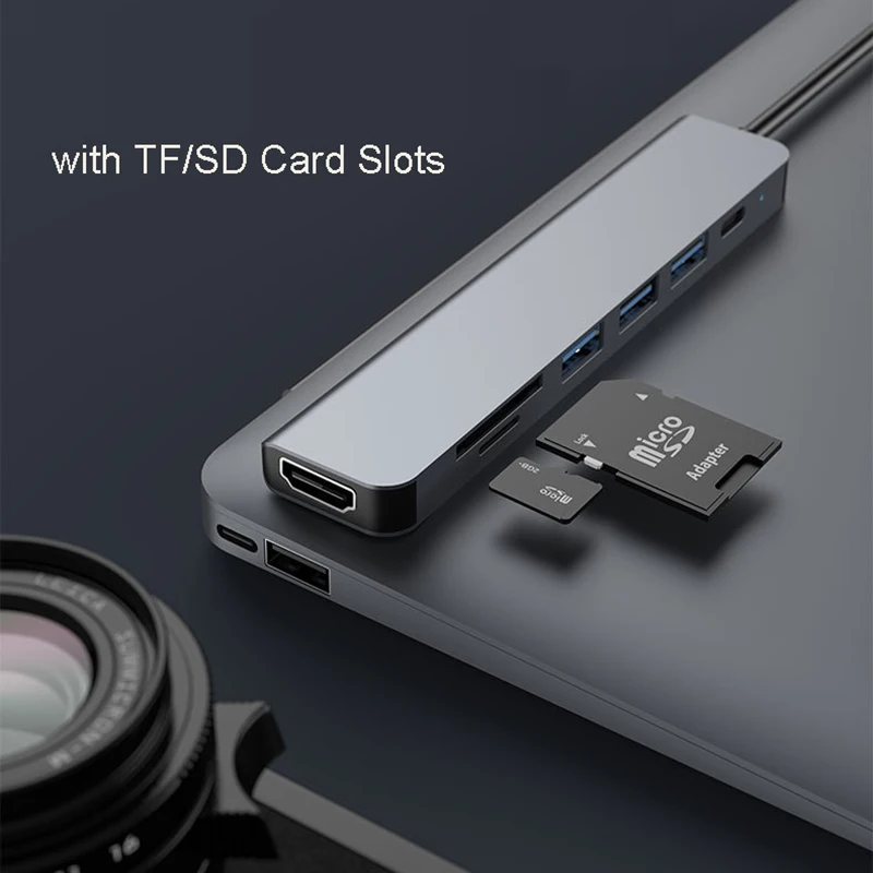 Comprar 7 puertos con HDMI a tipo C HUB HDTV 4K30hZ adaptador de pantalla de proyección PD 100W base de carga USB3.0 2,0 lector de tarjetas SD TF