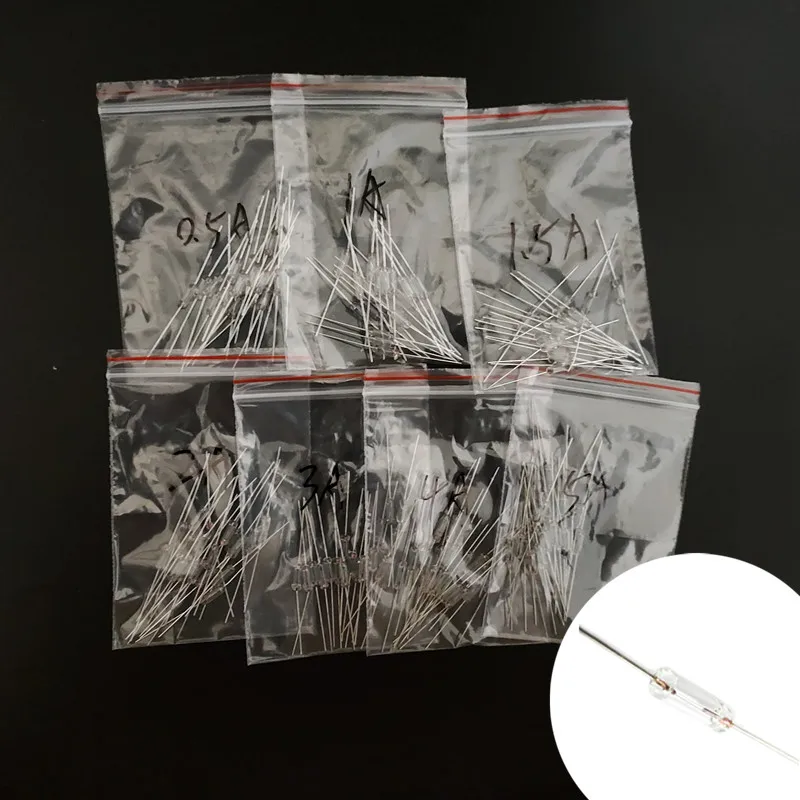 7 tipos * 20 piezas=140 unids/lote 3*10mm 250V fusible de vidrio rápido axial con juego de mezcla de alambre de plomo 0.5A 1A 1.5A 2A 3A 4A 5A 3x10mm