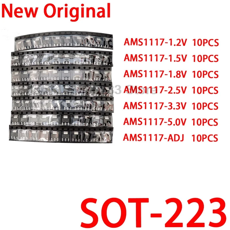 Comprar 70/LOTE 100% nuevo Kit regulador de voltaje AMS1117 1,2 V/1,5 V/1,8 V/2,5 V/3,3 V/5,0 V/ADJ 1117 7 valores cada 10 Uds SOT223