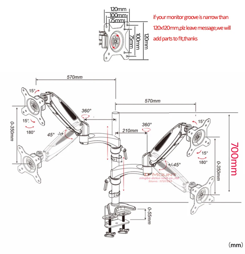 Adecuado para escritorio de 0 a 55 mm de espesor.