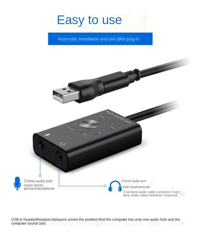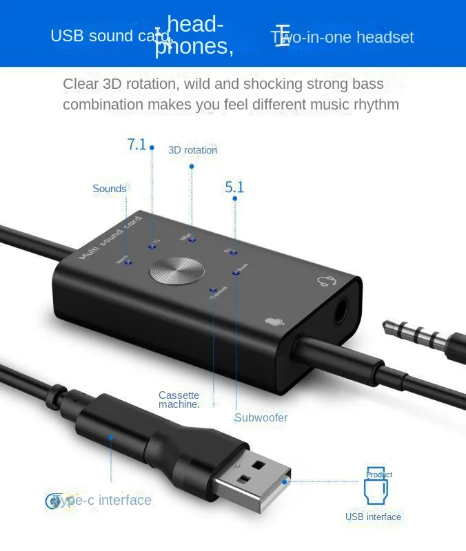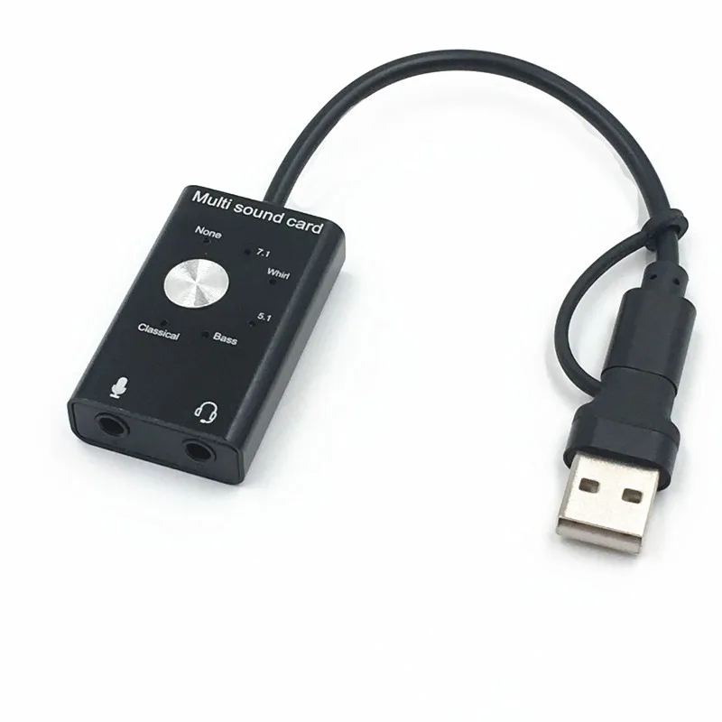 Comprar 7.1 5.1 USB External Sound Card USB2.0+ Type C To 3.5mm Jack Headphone Microphone Audio Adapter for Windows Mac Linux Android