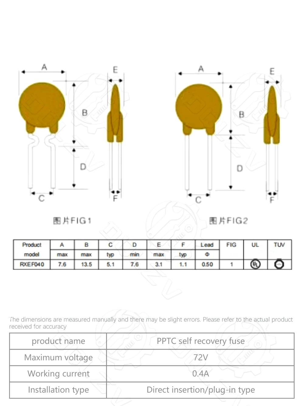 72V 0.4A 400MA PPTC Fusible Reajustable RXEF040 XF040 Paso 5mm