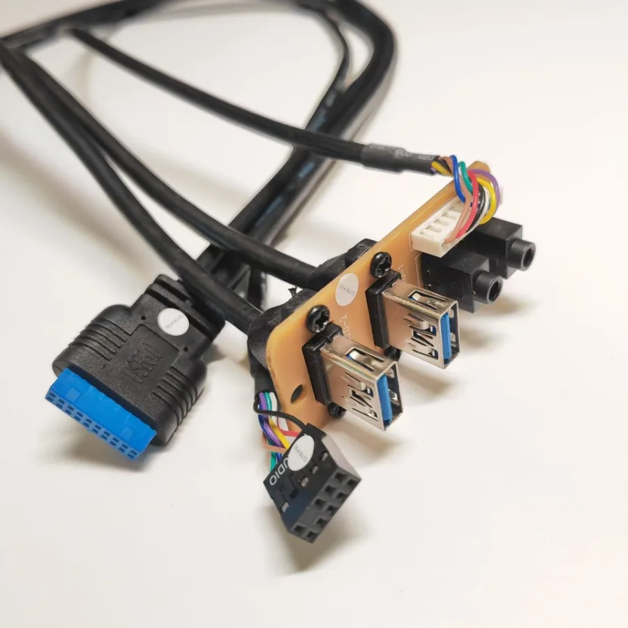Comprar 73cm 2 puertos USB Dual 3,0 19 pines 3,5mm HD Audio soporte interfaz placa base Cable de extensión chasis Panel frontal 65x27mm