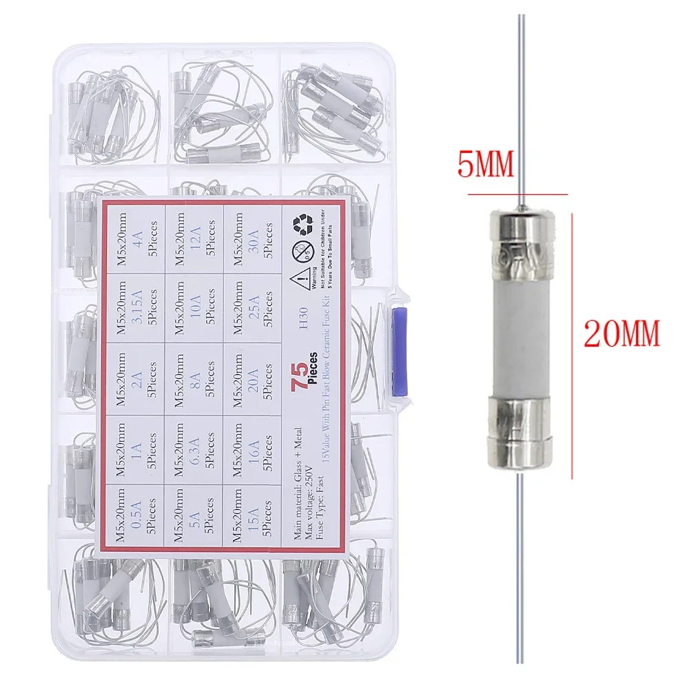Cantidad: 75 piezas (5 piezas en cada tipo)