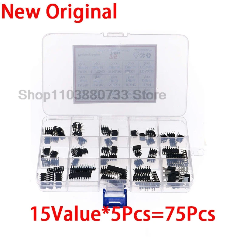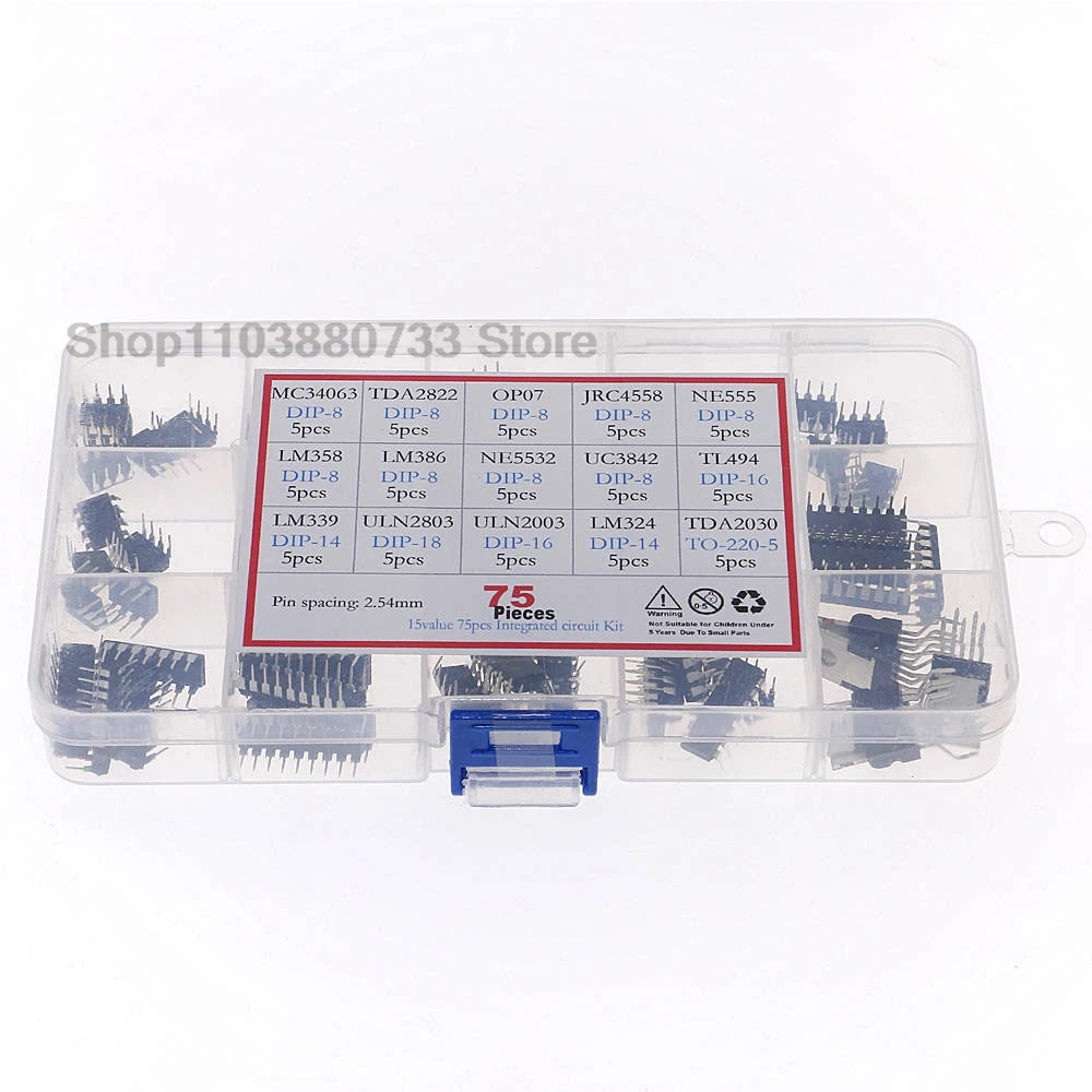 Comprar 75 Uds circuito integrado IC DIP Kit caja LM358 LM386 ULN2003 LM324 NE555 MC34063 TL494 ULN2803 LM324 TDA2030 LM339 ULN2803 TDA782