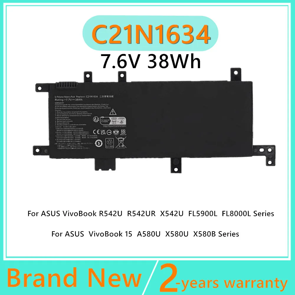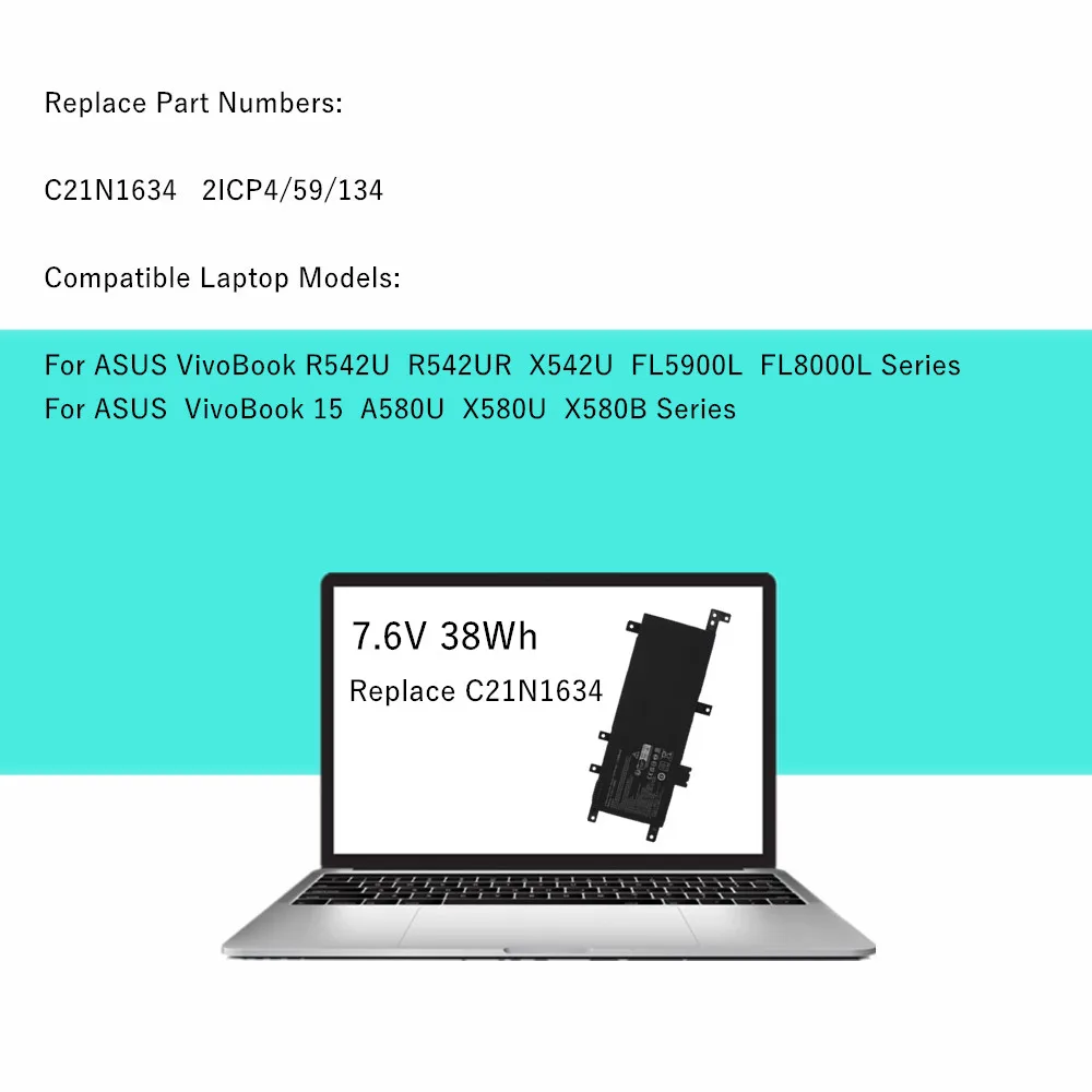 Comprar 7,6 V 38WH 2ICP4/59/134 batería del ordenador portátil para ASUS VivoBook R542U A580U R542UR X542U X580U FL5900L X580B FL8000L C21N1634