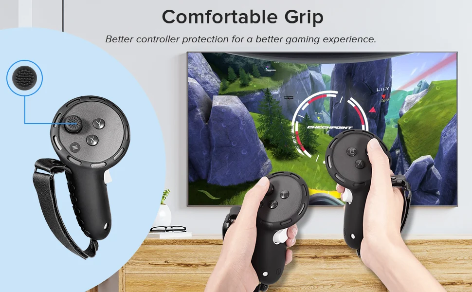 【PU leather strap】The grip protector for the VR controller comes with a PU leather strap, so you don't have to worry about the controller slipping out of your hand, It will automatically adjust according to the size of the hand