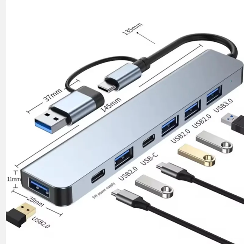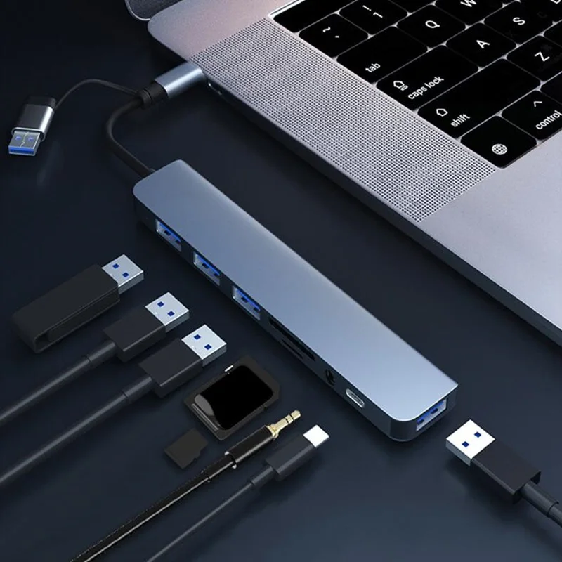 Comprar 8 en 1 USB C HUB tipo C divisor expansor adaptador multipuerto Dock USB 3 puertos para Xiaomi teléfono tableta carga rápida de transferencia de datos
