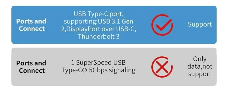 Si no hay ningún letrero al lado de la interfaz, verifique la tabla de parámetros de su computadora/teléfono móvil para confirmar que la interfaz USB C es la versión USB C 3.1, de lo contrario, no es compatible
