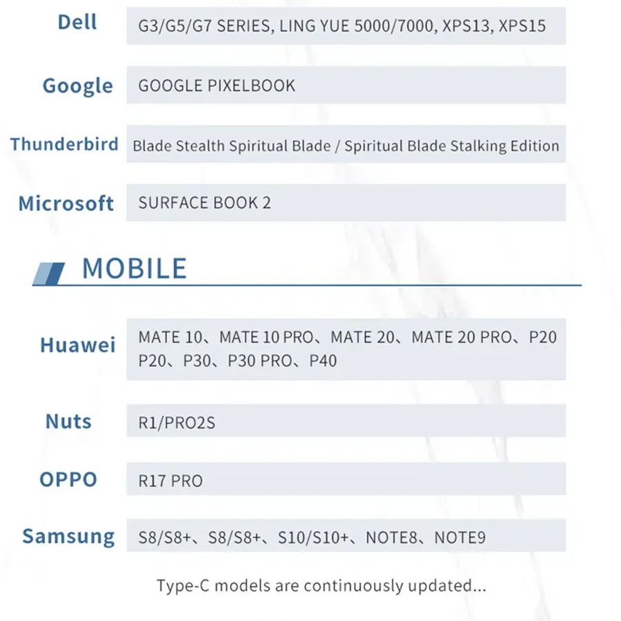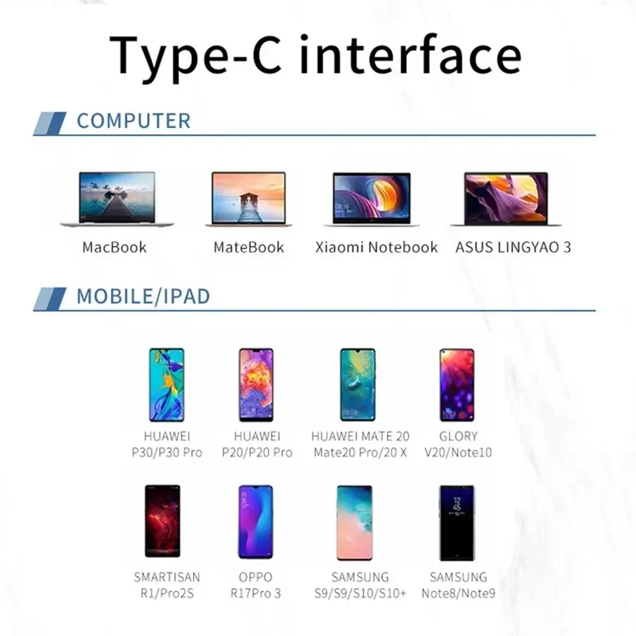 Compatible con la mayoría de ordenadores, tablets y teléfonos móviles con interfaz tipo C.