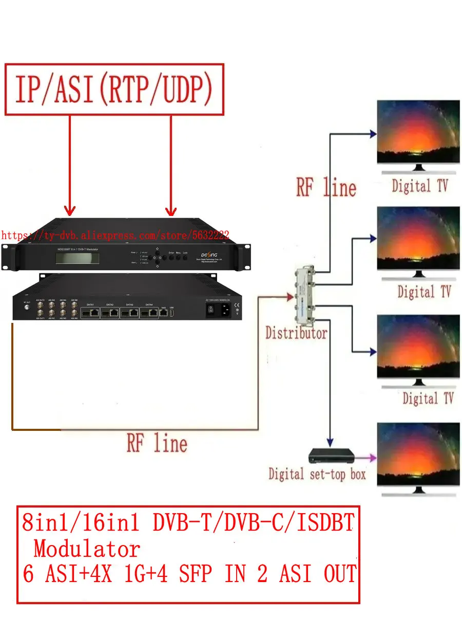 The Product 8in1/16in1 ISDB-T/DVB-C/DVB-T/ATSC modulator is the latest generational Mux-modulating device developed by our company. It has 8 (or16) multiplexing channels and ISDB-T/DVB-T/DVB-C modulating channels, and supports maximum 192 (or 512) IP input through the 8 GE ports and 8 (or16) ISDB-T non-adjacent carriers (50MHz~960MHz) output through the RF output interface. The device is also characterized with high integrated level, high performance and low cost. This is very adaptable to newly generation DTV broadcasting system.