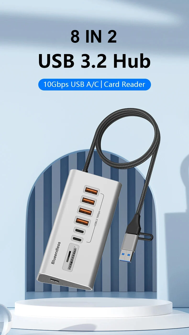 Hub USB 1:8 EN 2: 4xUSB3.2+2xTYPE-C 3.2+SD+TF+TYPE-C 5V/3A