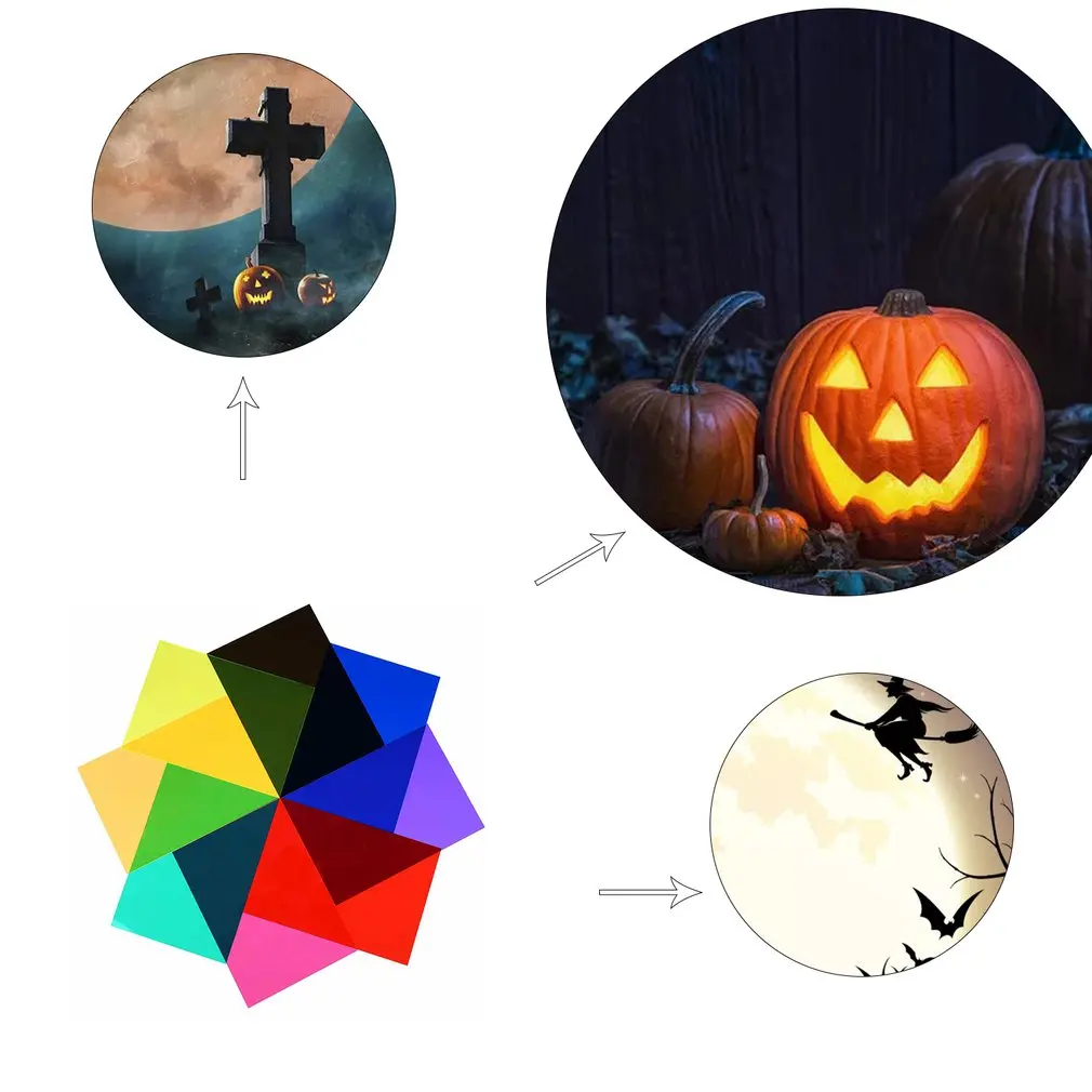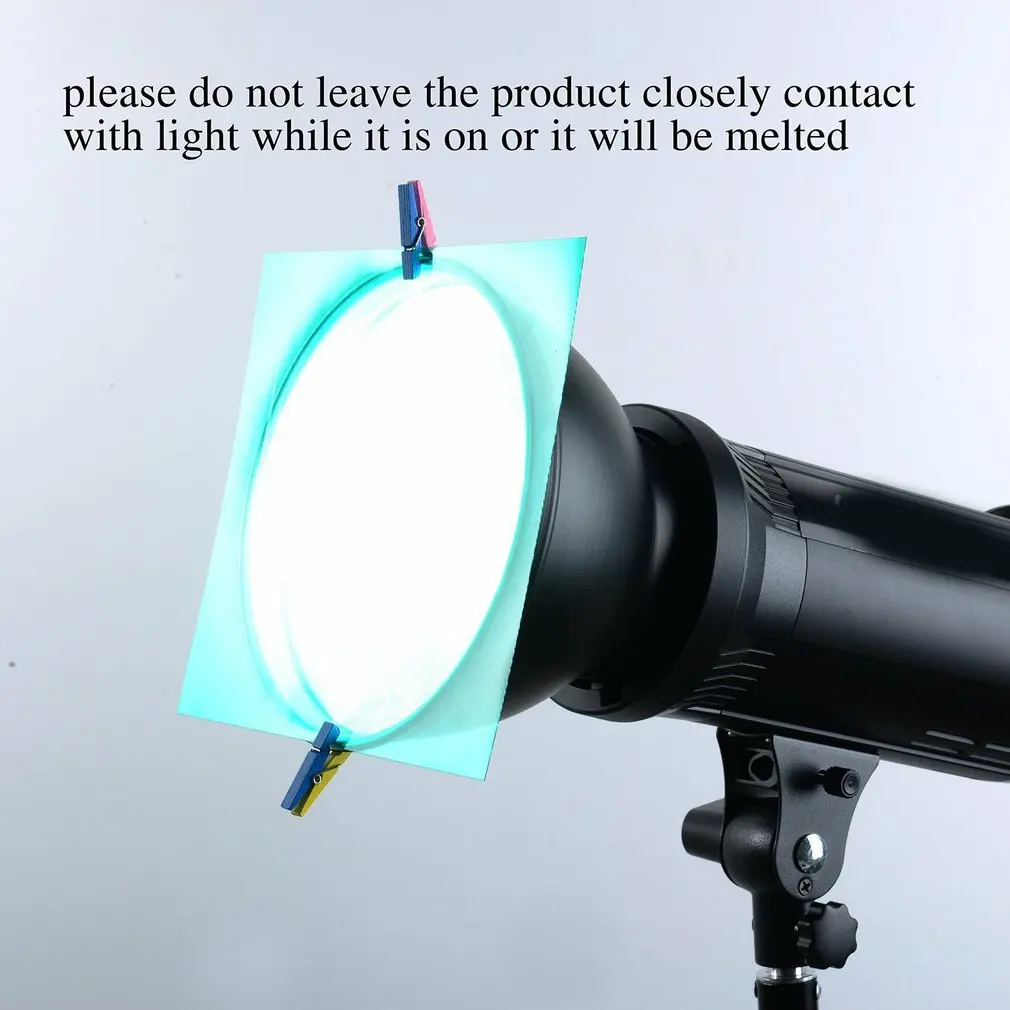 4 crea diferentes efectos: filtros de Color utilizados para efectos de iluminación y corrección de color, que incluyen color aditivo y sustractivo, mezcla de colores, transmisión de color, absorción y filtrado de las diferentes longitudes de onda de luz, crea diferentes efectos,. Bueno para estudio fotográfico luz de flash estroboscópica luces LED