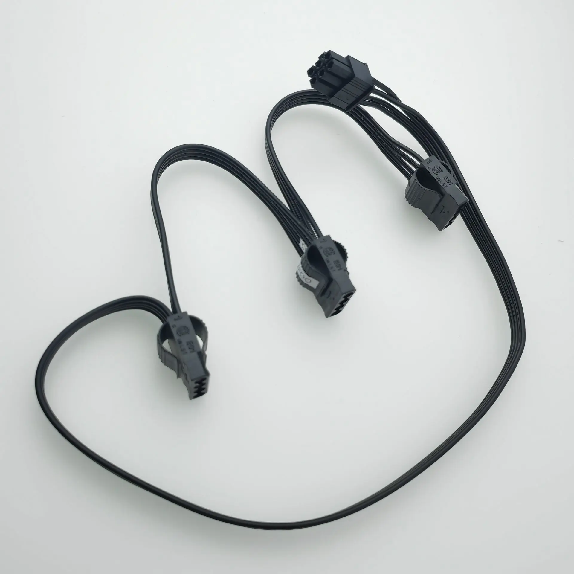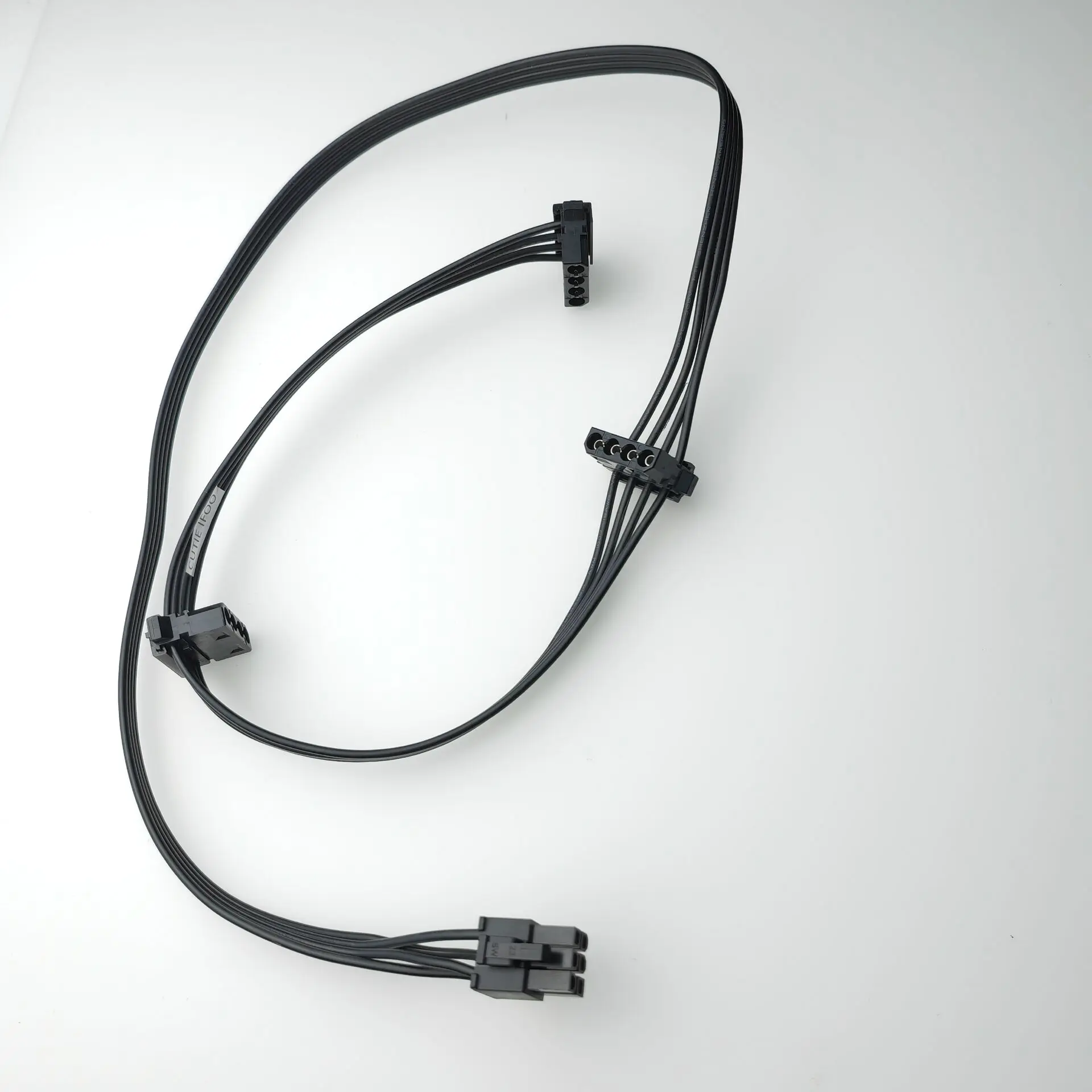 Tipo E: Cable de alimentación IDE de 6 pines a 3 puertos, 90 grados, 4 pines, longitud aproximada de 40 + 15 cm