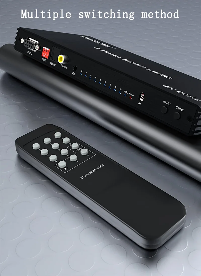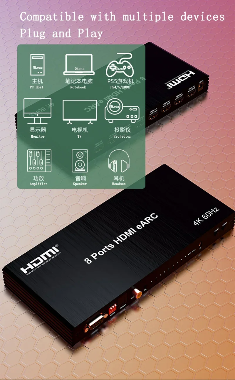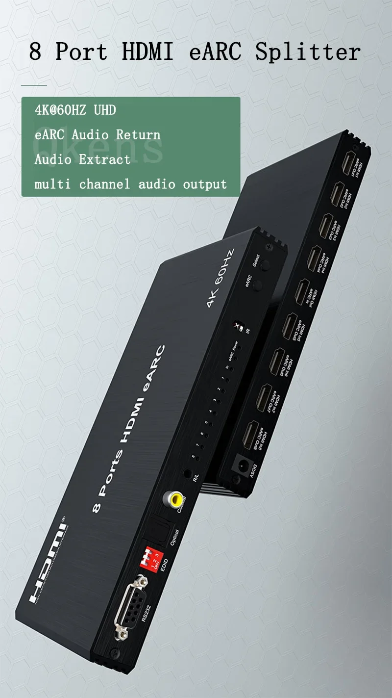 This product supports eARC splitter1x8 and HDMI switcher 8x1 two application scenarios optional.