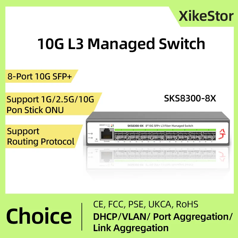 Comprar 8 puertos SFP+ de 10 gigabits L3 Soporte de red administrado DHCP y soporte de enrutamiento dinámico División VLAN y aggregación de puertos
