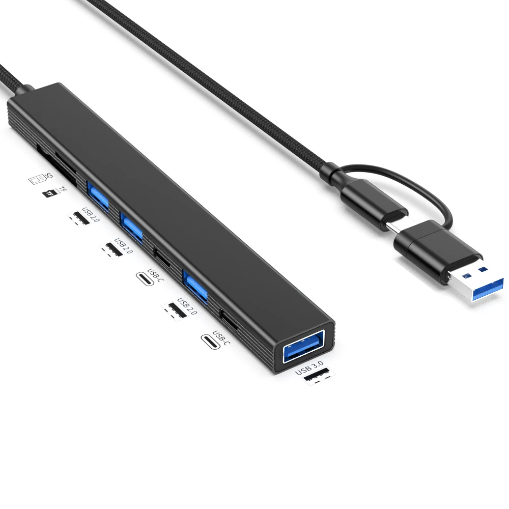 HUB USB 3.0 de 8 puertos HUB USB C TIPO C de doble cabezal con lector de tarjetas SD MICRO SD divisor de cable de transferencia de datos USB2.0 base de carga de teléfono tipo C convertidor de cable de computadora extensor de cable de computadora portátil