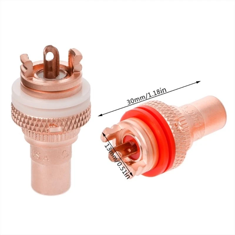 8 enchufes RCA hembra (4 rojos + 4 blancos) Chapado en oro. Material del conductor: Longitud: aproximadamente 30x13 mm/1,18x0,51" Instalación: Diámetro del orificio del chasis 12 mm, espesor máximo del panel 5 mm.