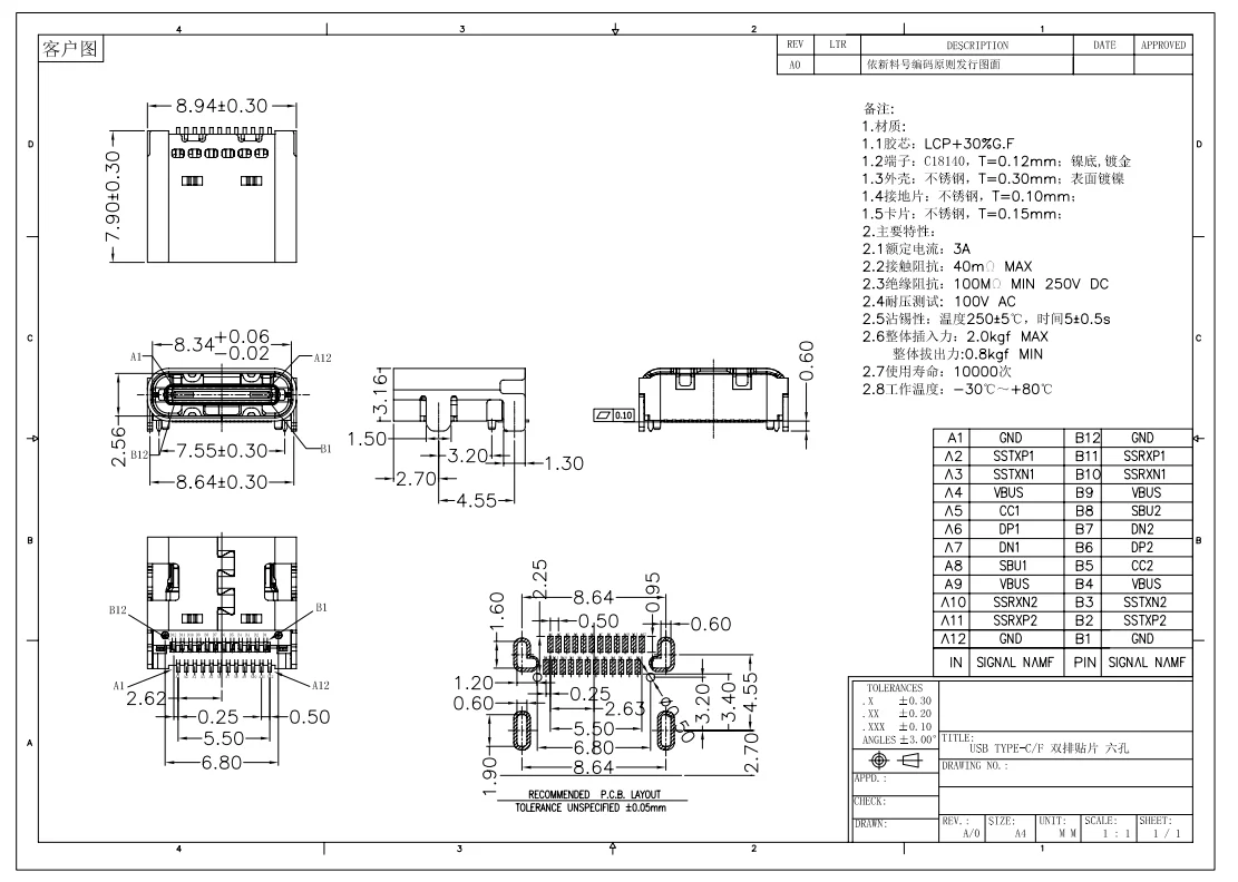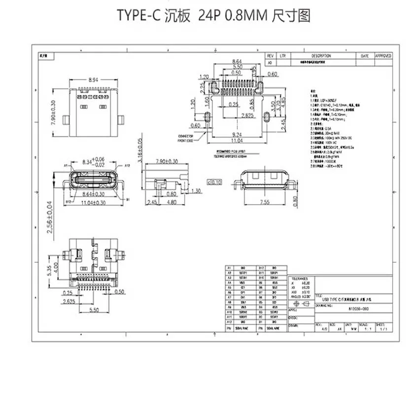 8 Uds tipo C Micro 24pin USB 3.1 doble fila a bordo puerto hembra Jack cola Sockect Plug para teléfono PD conector de datos de carga rápida