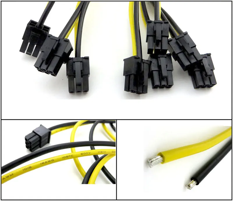 Cable de alimentación PCI-E UL1015 14AWG de 6 pines para B Antminer S3 S5 S7