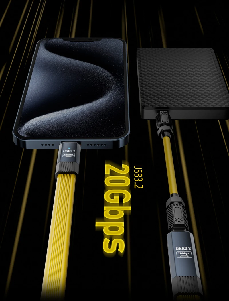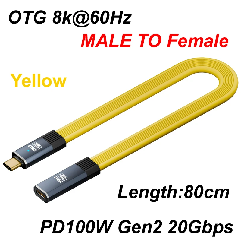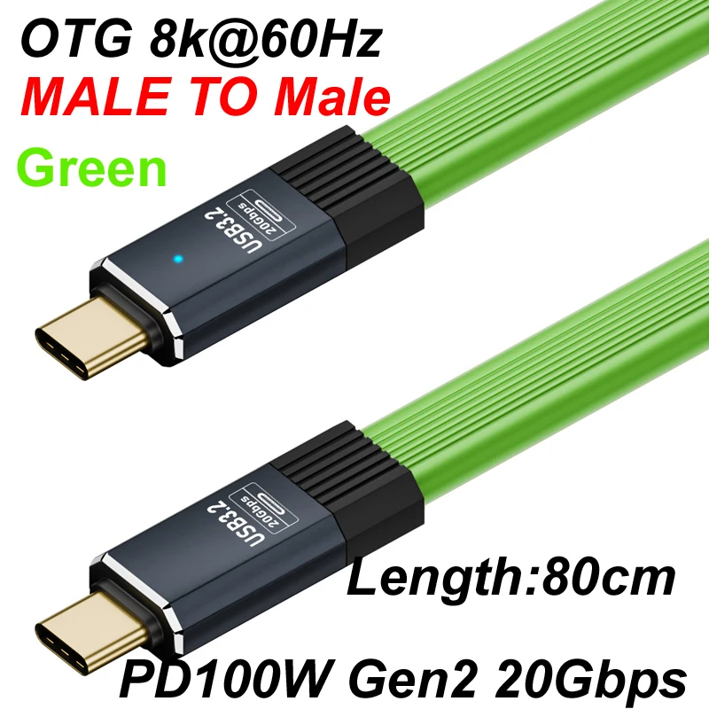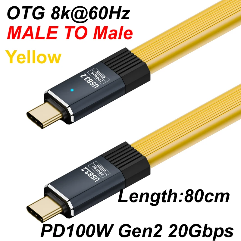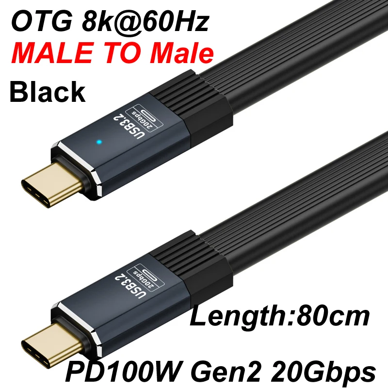 80CM 8k@60Hz USB 3.2 OTG 20Gbps Tipo C a Tipo C Cable de datos plano ThunderBolt 3 PD100W 20V 5A cargador rápido de Audio de vídeo macho/hembra QC4.0/Para iPhone 15 16 Huawei Samsung Xiaomi teléfono portátil hdtv gabinete de disco duro móvil teclado de ratón