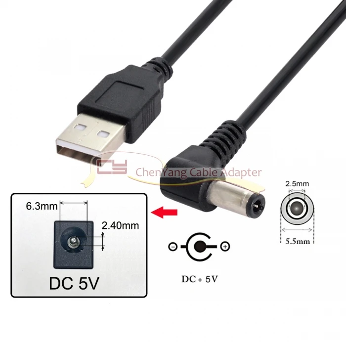 USB 2,0 A Tipo Macho a 5,5x2,5mm DC 5V Enchufe de alimentación Conector de barril Cable de carga