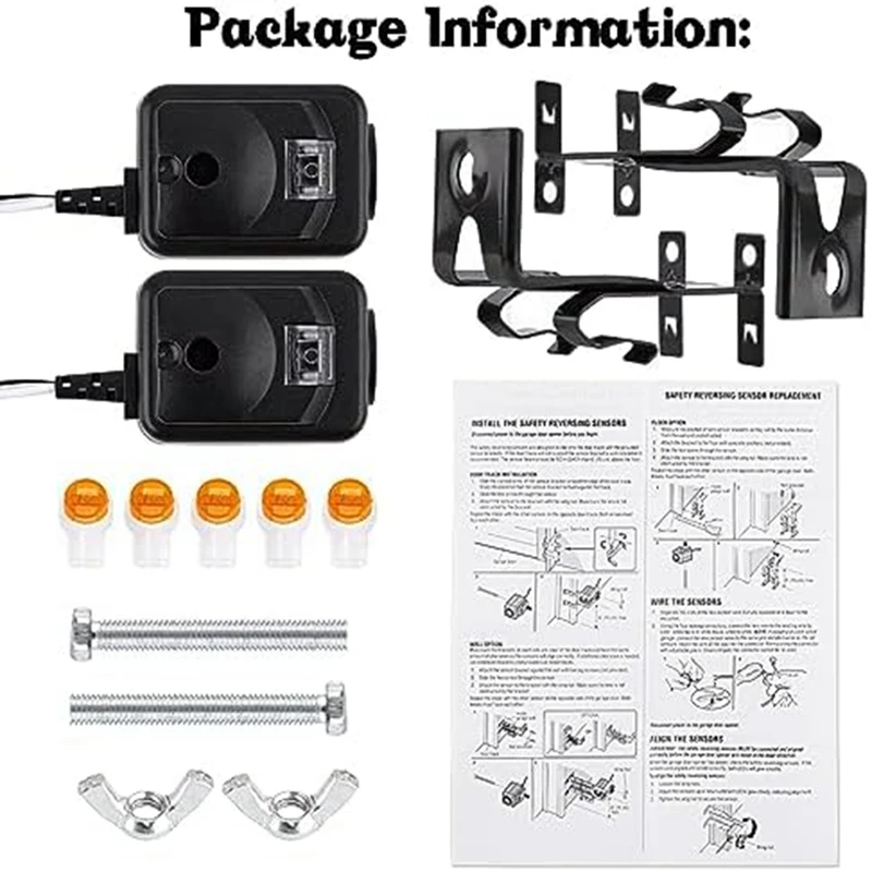Kit includes safety sensors (a pair), bracket, wires, screws, connectors and installation Instructions.