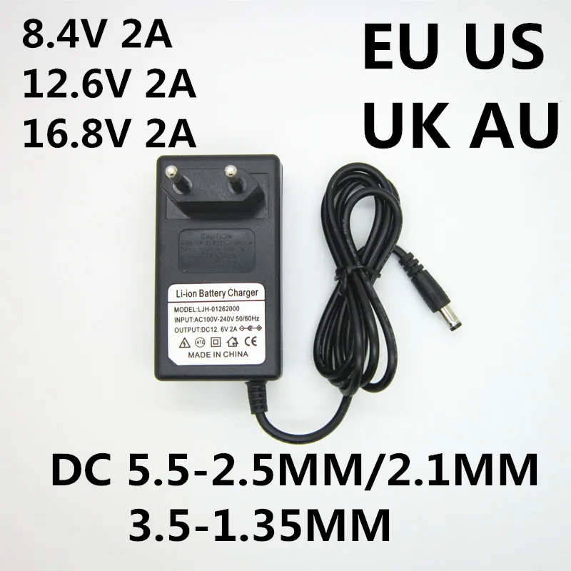 Comprar 8,4 V 12,6 V 16,8 V 2A 2000ma adaptador de fuente de alimentación 8,4 12,6 16,8 V cargador de batería DC 5,5*2,5 MM para batería de litio 18650 Li-ion