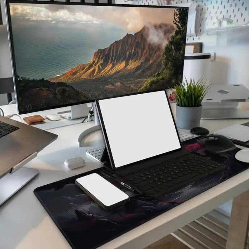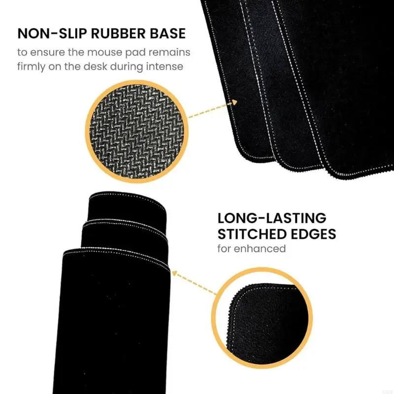 Fabricada con caucho con bordes cosidos de 3 mm con revestimiento impermeable, esta alfombra de escritorio de gran tamaño se adapta a configuraciones completas de teclados.