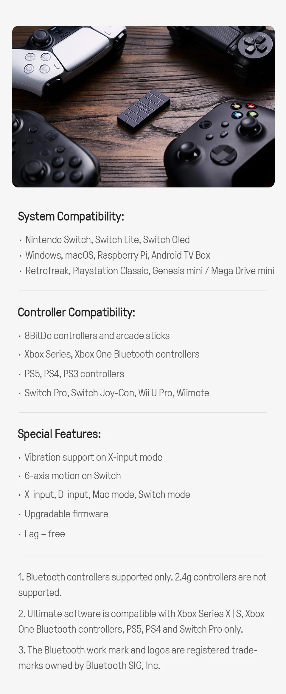 Comprar 8BitDo Adaptador Bluetooth inalámbrico USB 2 para PC Mac Raspberry Pi Switch1, 2 Steam Deck compatible con PS5 Xbox JoyCon controlador