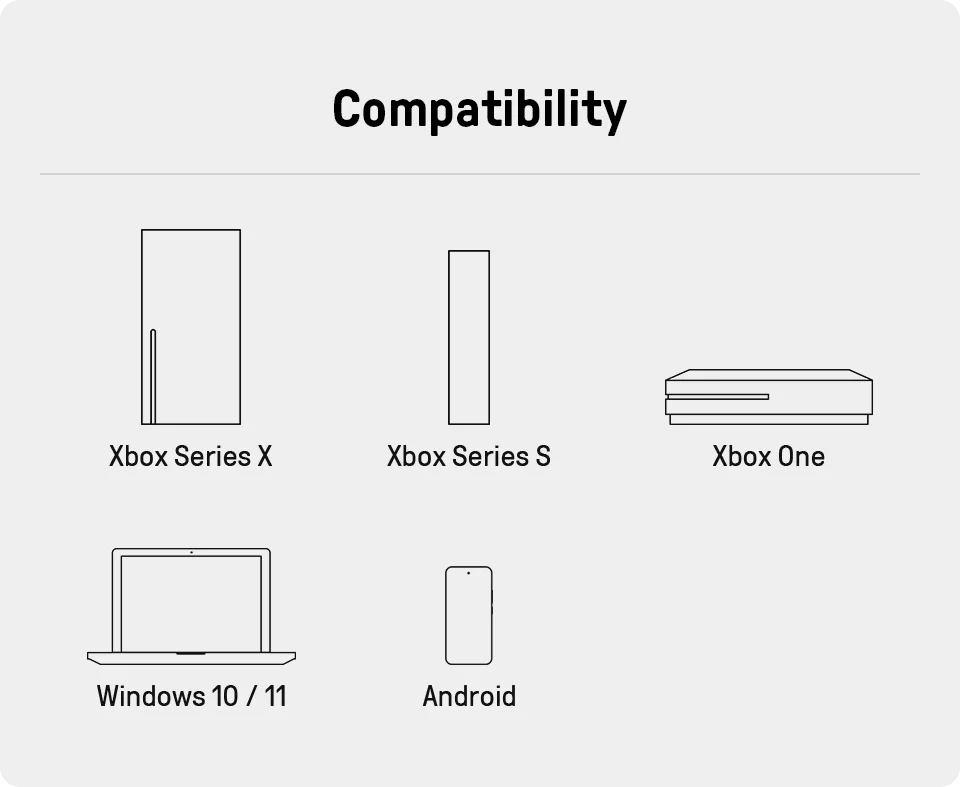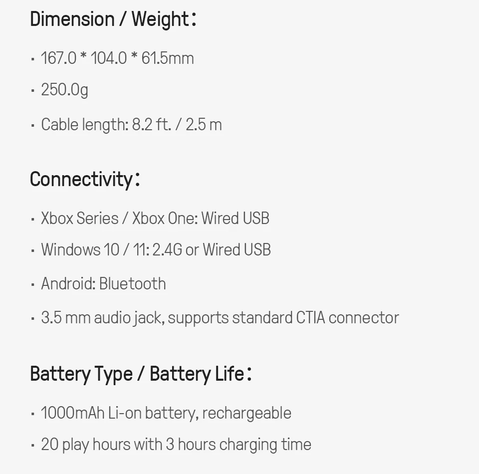 Lo más versátil posible. Conéctese a su Xbox a través de USB con cable, su PC con Windows a través de 2,4G o sus dispositivos Android a través de Bluetooth.