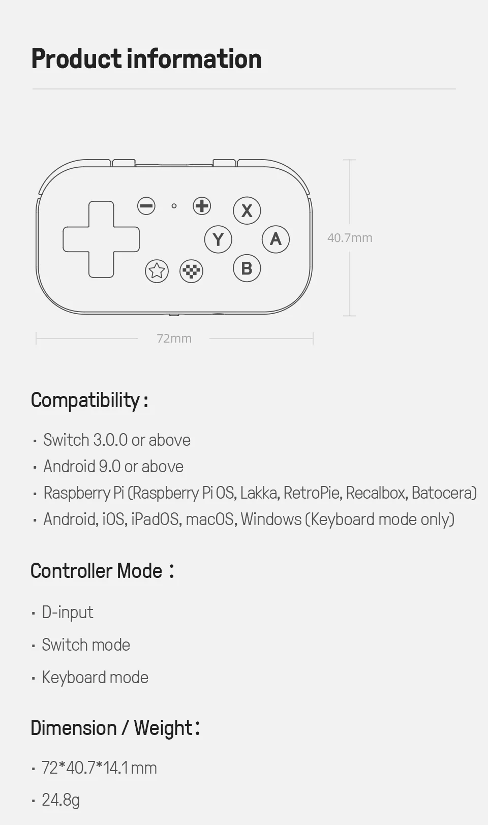 Comprar 8bitdo-controlador Micro Bluetooth, Mini gamepad de bolsillo para Switch, Android y Raspberry Pi, compatible con modo de teclado