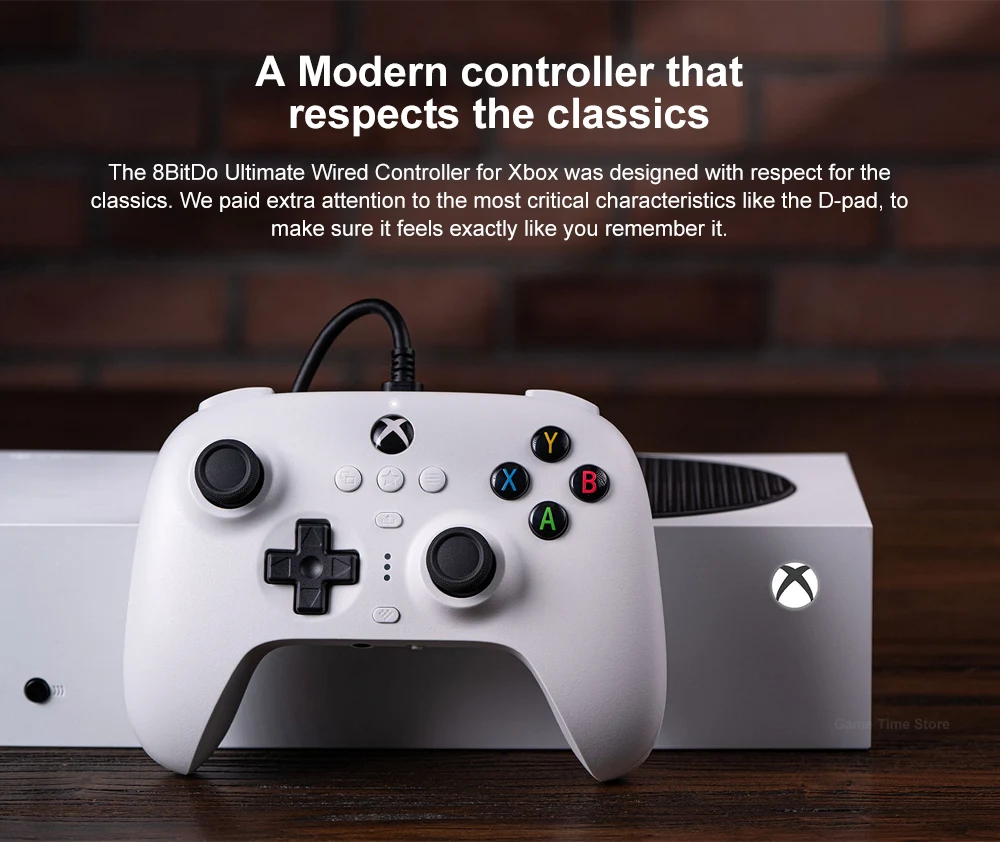 El controlador con cable 8BitDo Ultimate para Xbox fue diseñado respetando los clásicos.Prestamos atención adicional a las características más críticas como el D-pad, para asegurarnos de que se sienta exactamente como si lo recuerda.