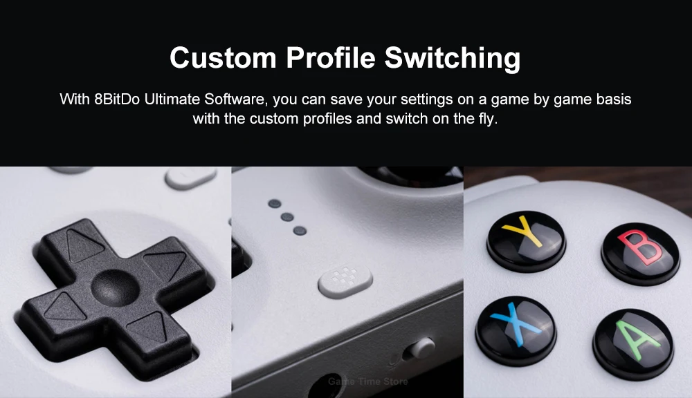 Con el software 8BitDo Ultimate, puedes guardar tu configuración en un juego basado en juegos con los perfiles personalizados y encender la marcha.