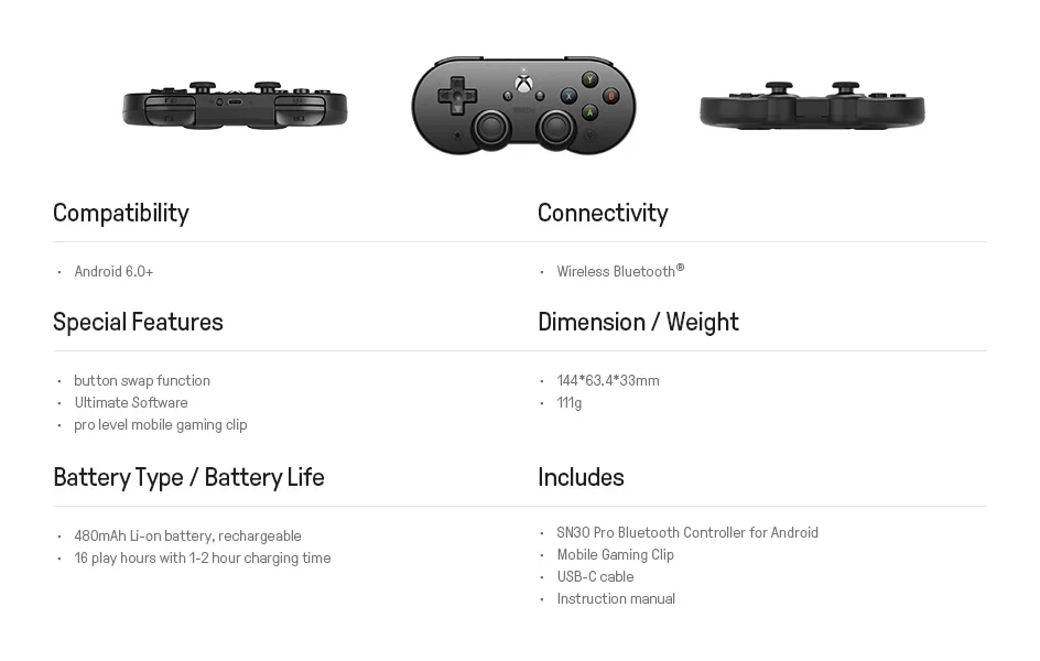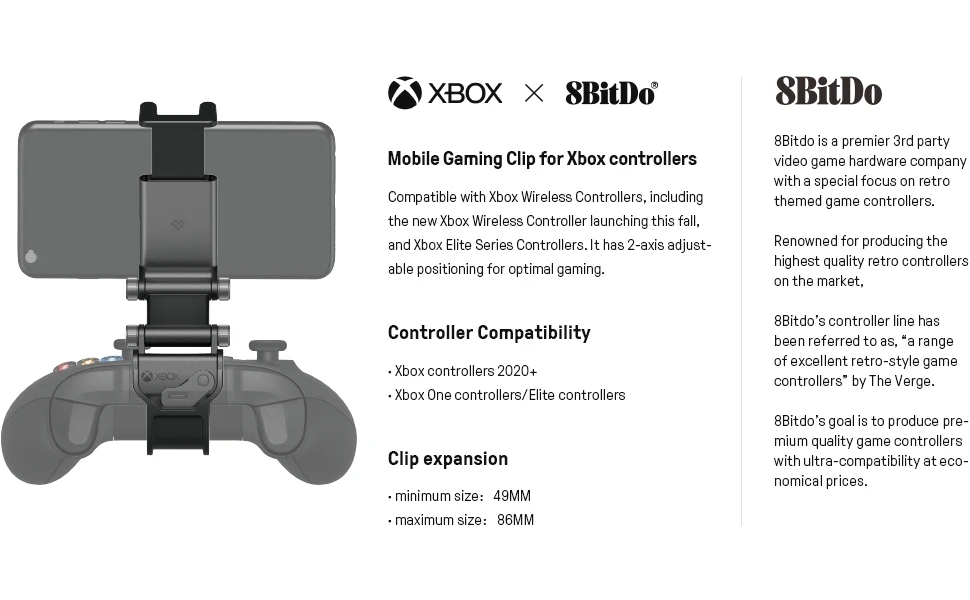 Comprar 8bitdo-mando SN30 Pro con Bluetooth, Gamepad para Xbox Cloud Gaming en Android, soporte para teléfono móvil, Clip para Xbox Game Control