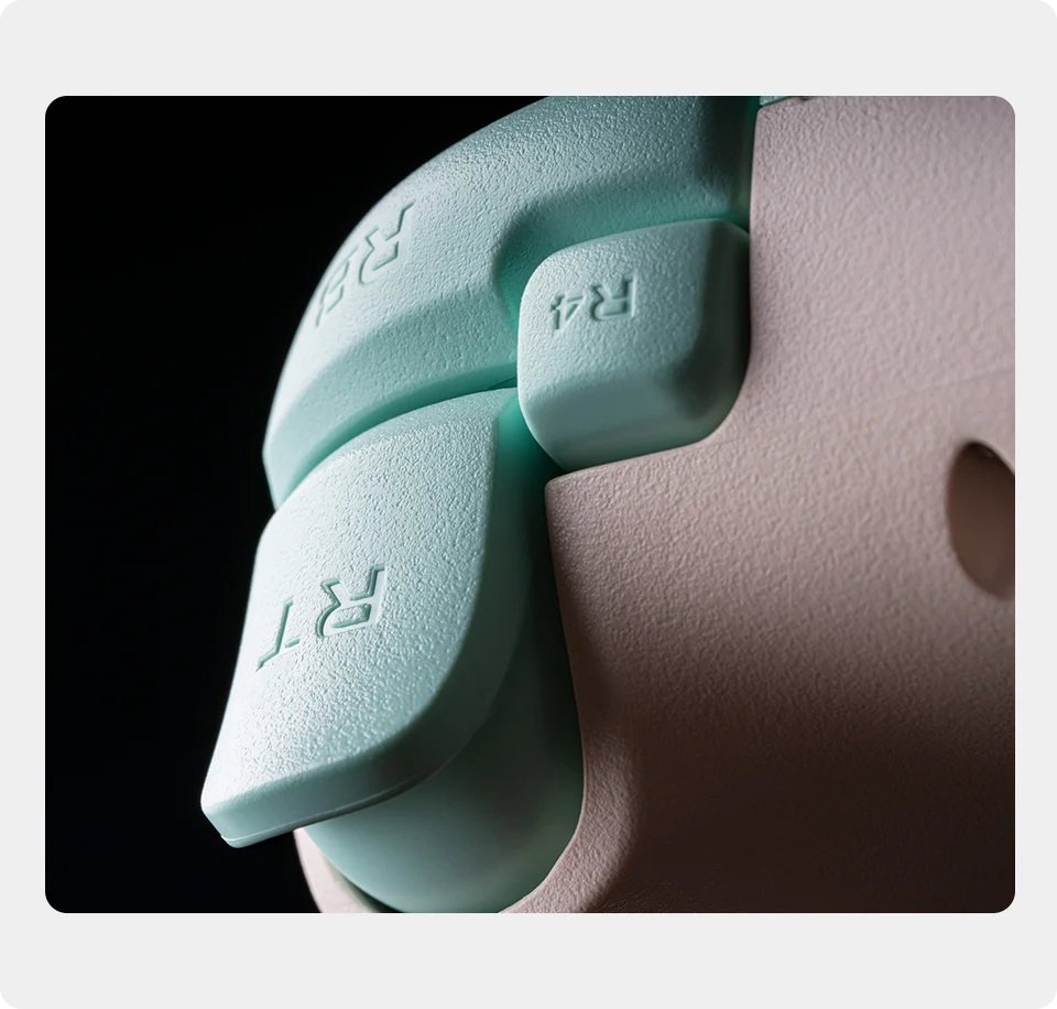 Recalibrado para una sensación de clic pero suave. Ligero pero táctil.