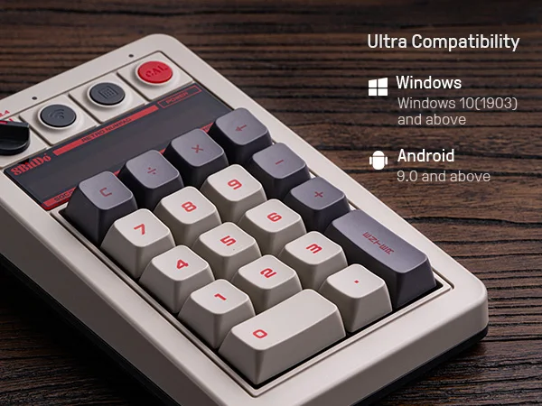 Comprar 8bitdo-Numpad mecánico Retro 18, modo calculadora, 18 teclas, Bluetooth/2,4G/con cable, accesorios de juego para PC, ventana, Android