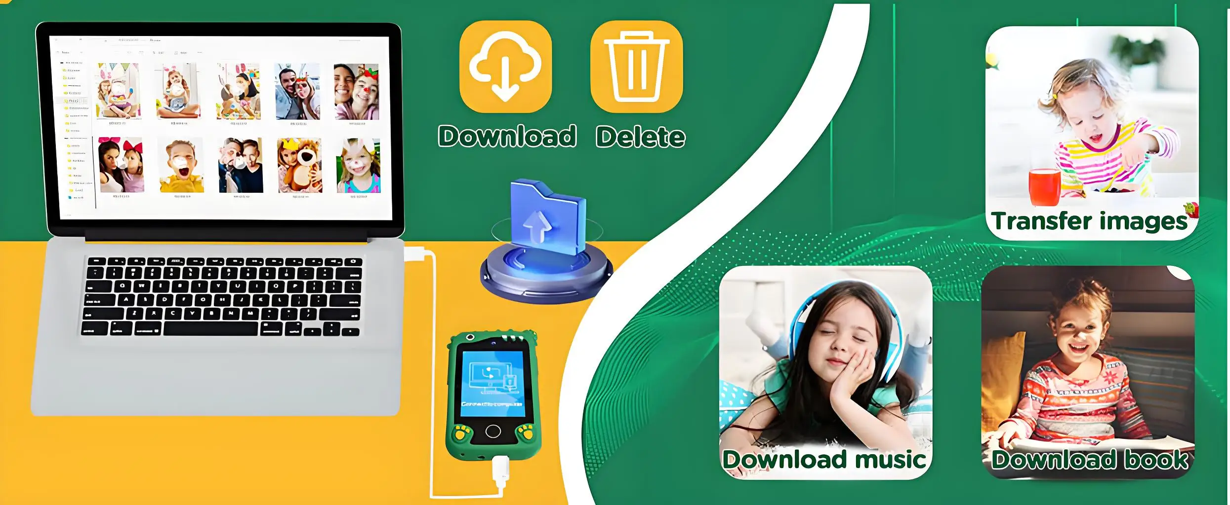Función de grabación de foto/vídeo: admite tomar fotografías en 9 estilos de pegatinas de cabeza grande.Función de música: admite reproducción y grabación de música.Función de aprendizaje: Alfabeto (26 letras), calculadora, Fábulas de Aesop, Ocho maravillas del mundo, Función deportiva, Podómetro inteligente.Función de gestión del tiempo: despertador, recordatorio, calendario, temporizador, función de seguimiento de doce habitantes, planificación.Función de papel tapiz: 16 tipos de interfaces de reserva.Juegos admitidos: 2048, tiro de baloncesto, Arelwaid (colección de monedas de oro), carreras, aviones de tiro, disfraces, lavado de manos, serpiente, clasificación de números, búsqueda de letras mismas, eliminación de números, giro de imágenes, papel en roca-tijeras,Panda cruzando el río, tenis de mesa, eliminación de batallas en avión, cruzando la carretera, JUGETES DE DUDO.Función de música: reproducción de audio MP3Funciones: Cámara, Álbum, Fotografía, Vídeo, Música, Grabación, Despertador, Linterna, Temporizador, Calculadora, Podómetro, Temporizador, Recordatorio, Historia, Resolución de grabación de video, Temporizador, Diferentes máquinas, Juegos, Herramientas, Configuraciones.etc.Lista de embalaje: