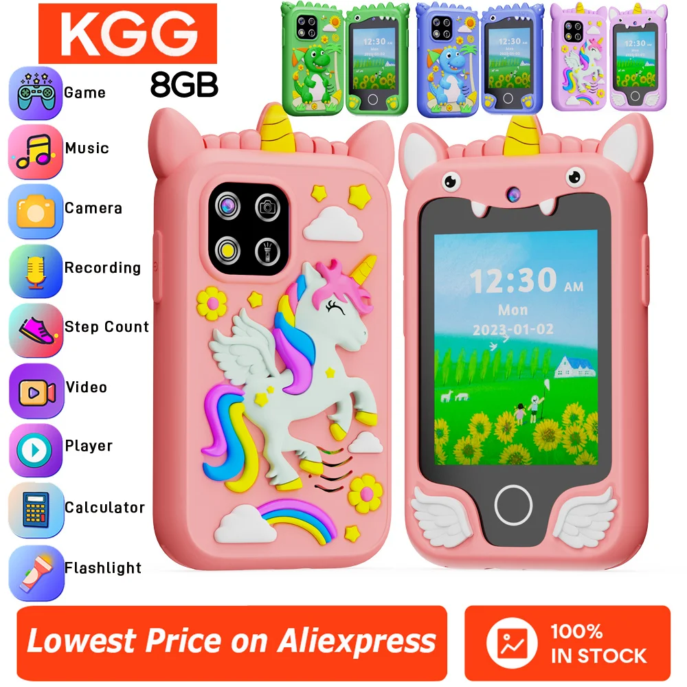 Comprar 8GB niños Muscial teléfono inteligente juguetes dibujos animados unicornio pantalla táctil bebé móvil niñas niños juguetes educativos cumpleaños regalos de navidad