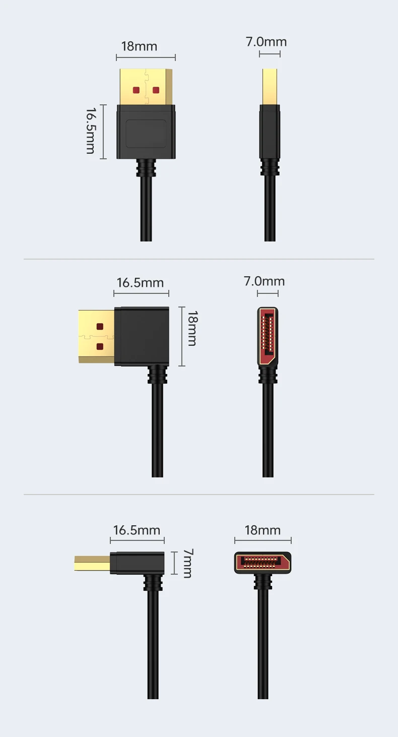 Especificación del enchufe: Puerto DP estándar, chapado en oro de 24 quilates